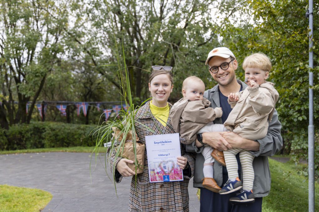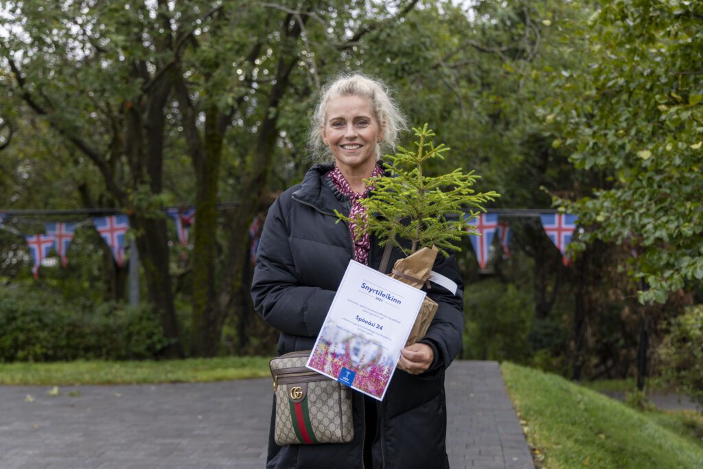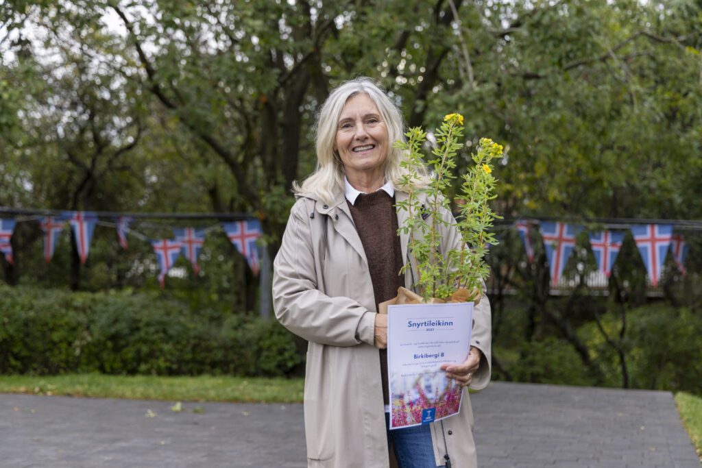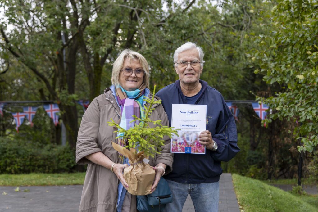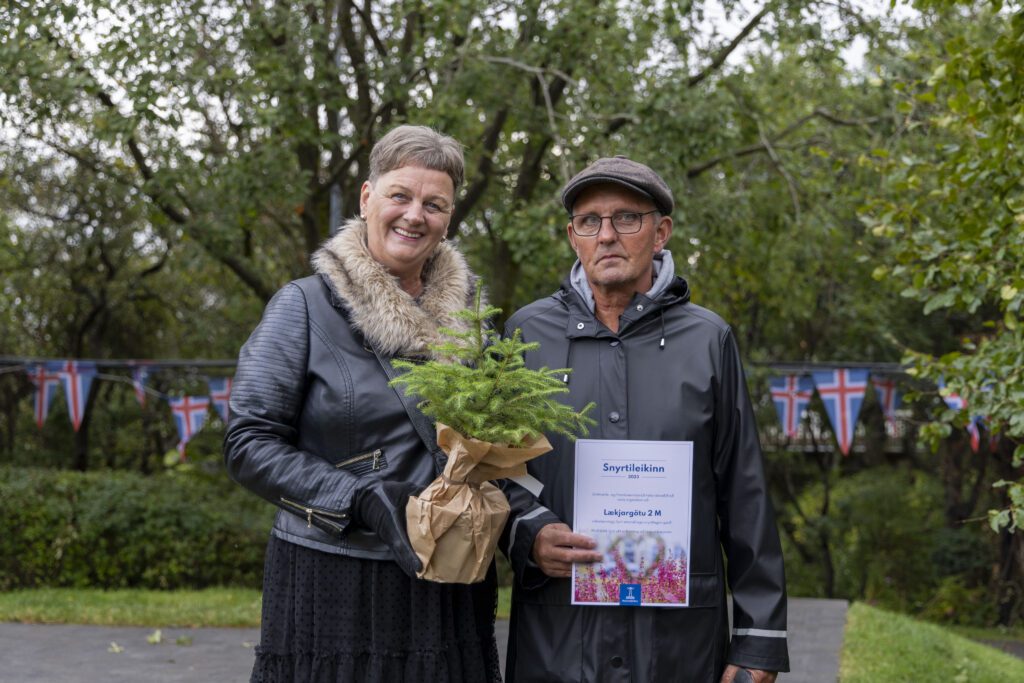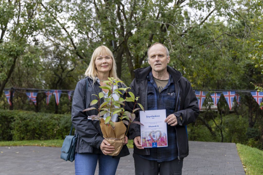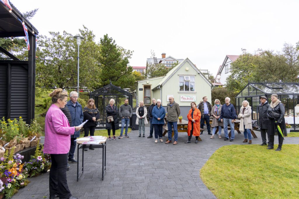 Thursday, September the 7th, awards were given, for gardens and plots that excelled in neatness this year. Many suggestions were received from the townspeople, and an employee of the Department of Planning and Environment, travelled around all summer to carefully examine all the nominations received, as well as to make proposals for excellent gardens, himself. The awards ceremony took place on the stage in the newly renovated and colourful Hellisgerði and Tinna Bessadóttir, from Álfakaffi, provided beautiful and tasty refreshments for all the guests.