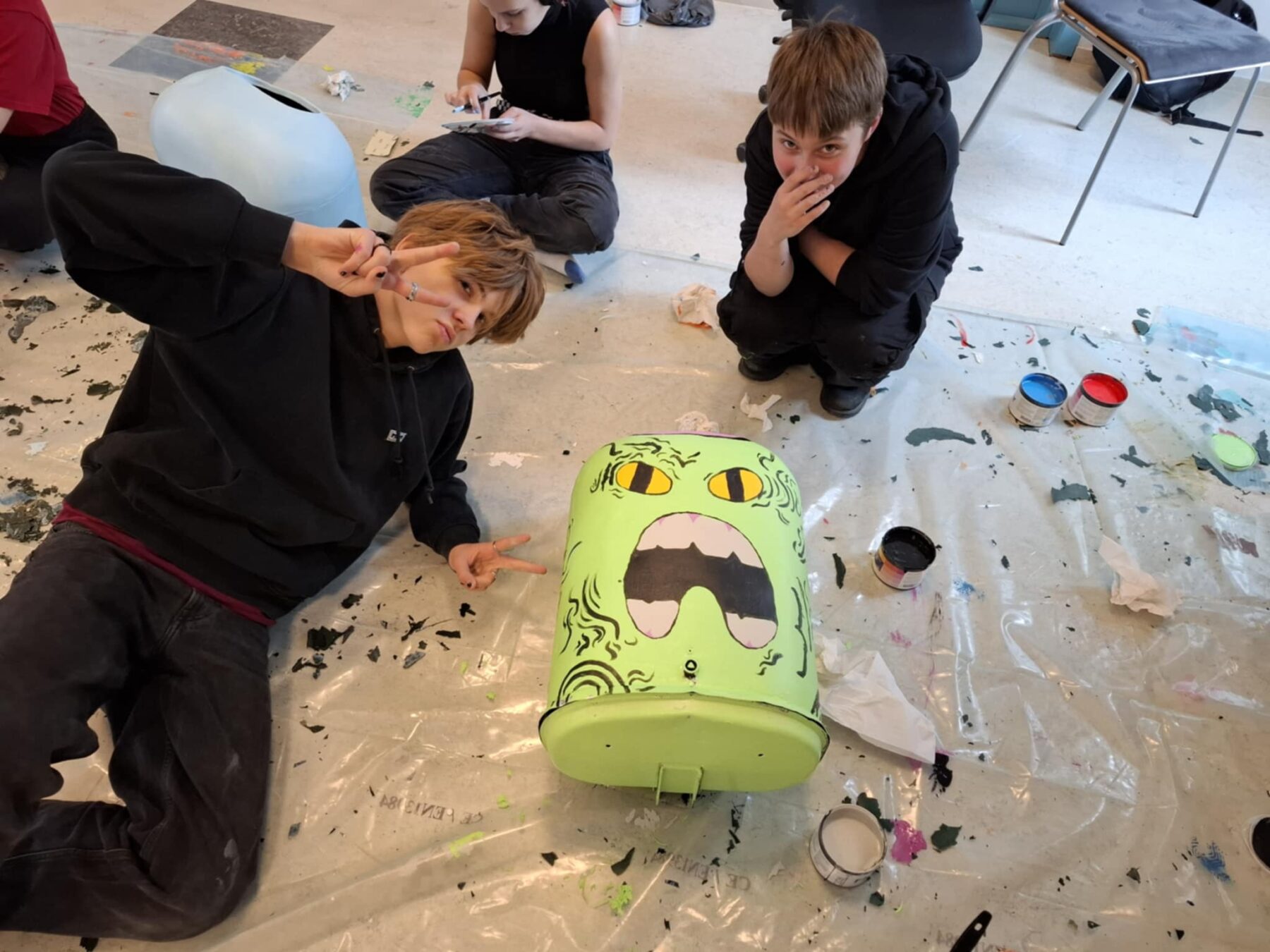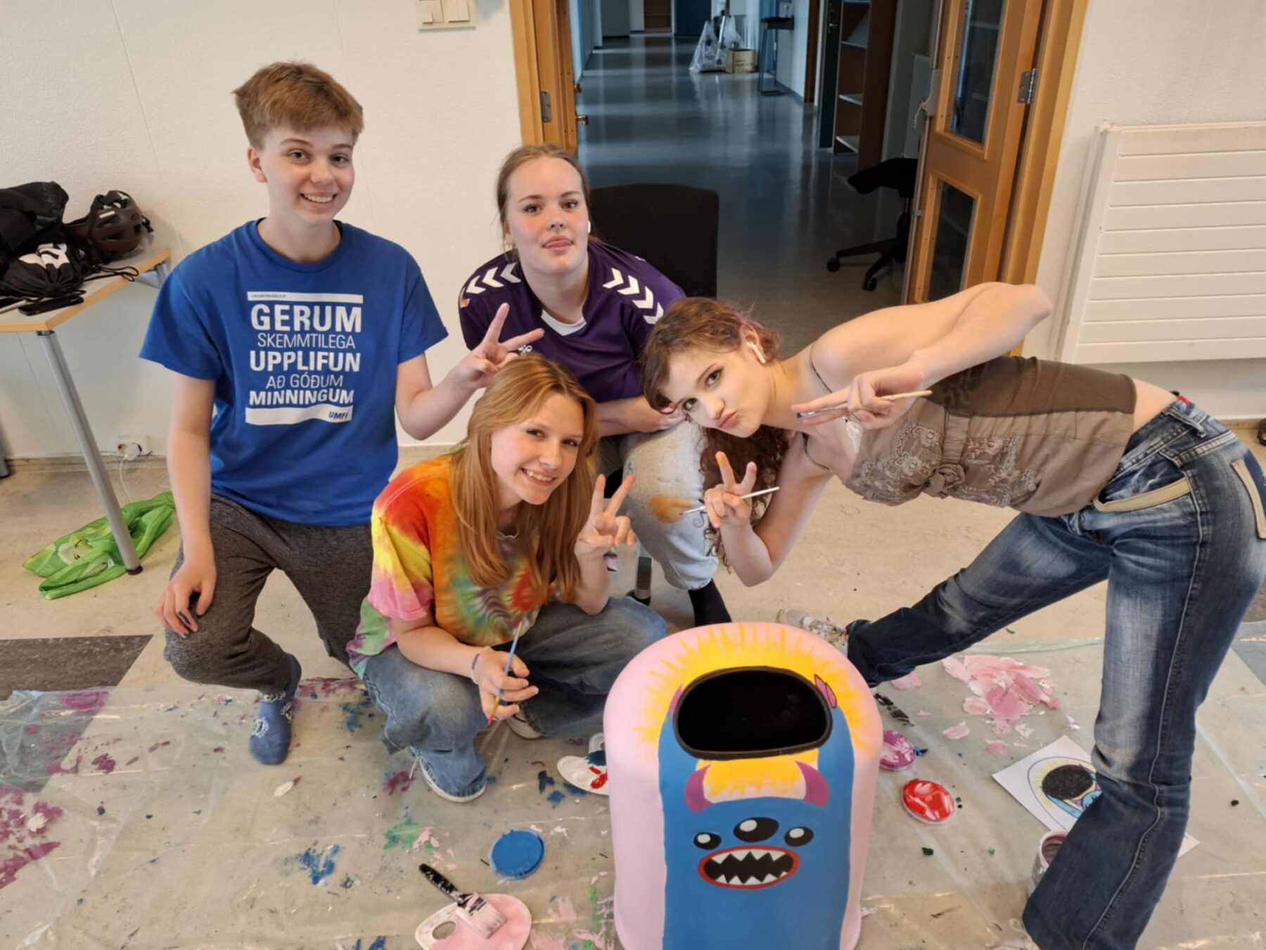 “We hope that when people throw trash into these creative trash monsters, they think about the environment.” But when will the bins go up? “We aim to have them up in the next few days,” says Diljá, encouraging young people to learn more about the art group and others within the work school and to apply for next year.
