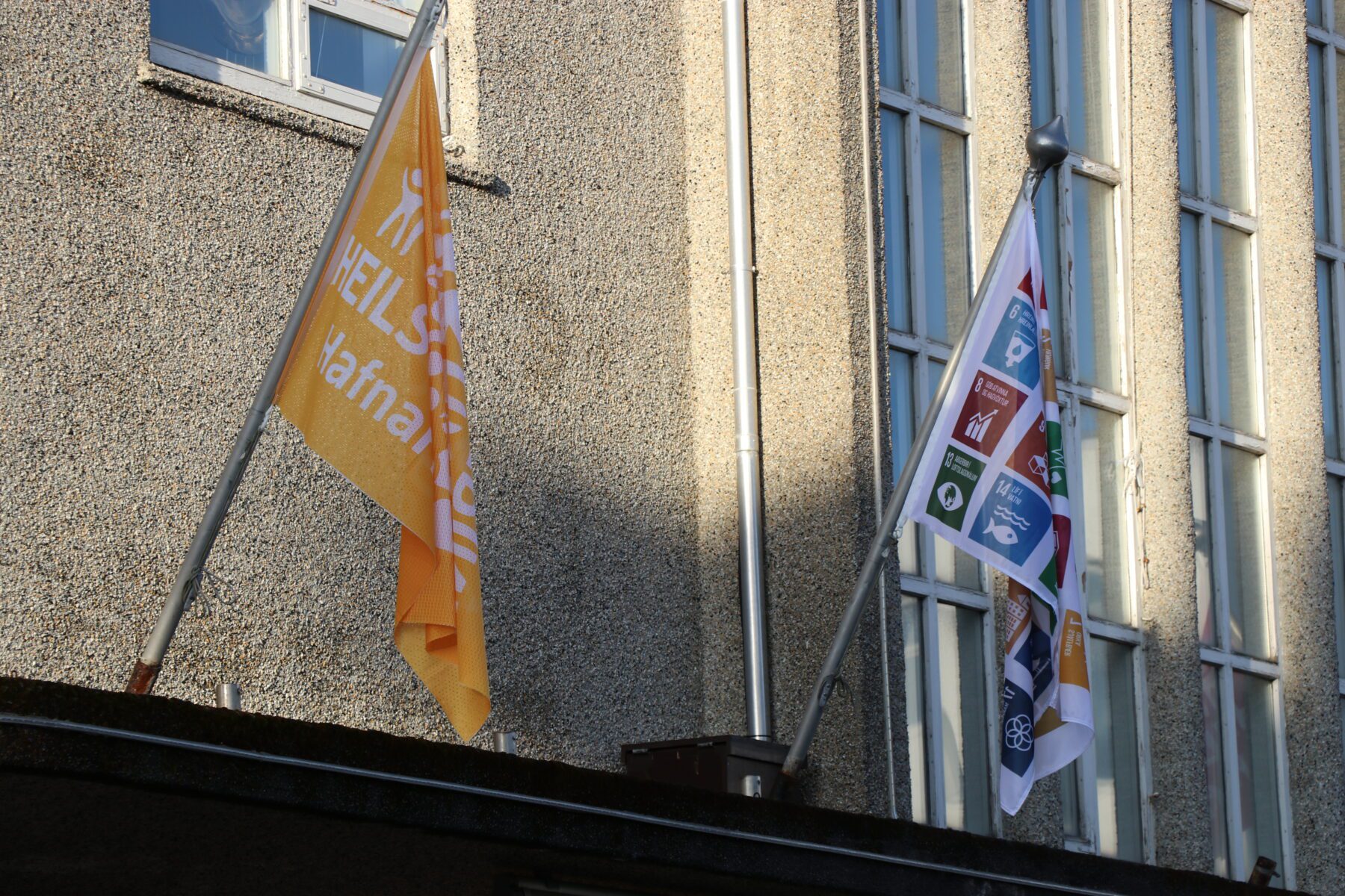 The UN Global Compact in Iceland, in collaboration with the Icelandic United Nations Association with the support of the Prime Minister and the Ministry for Foreign Affairs, is hosting the flag day of the UN Sustainable Development Goals for the first time in Iceland. The town of Hafnarfjörður participated in the Flag Day by hoisting the flag at City Hall, yesterday on the 25th of September. Hafnarfjörður’s overall strategy for 2035 is structured around nine of the main objectives linked to the United Nations Sustainable Development Goals. Each of them should contribute to long-term improvements and positive change in order for the municipality’s vision of a sustainable society, well-being of its residents and the townscape, to become a reality.