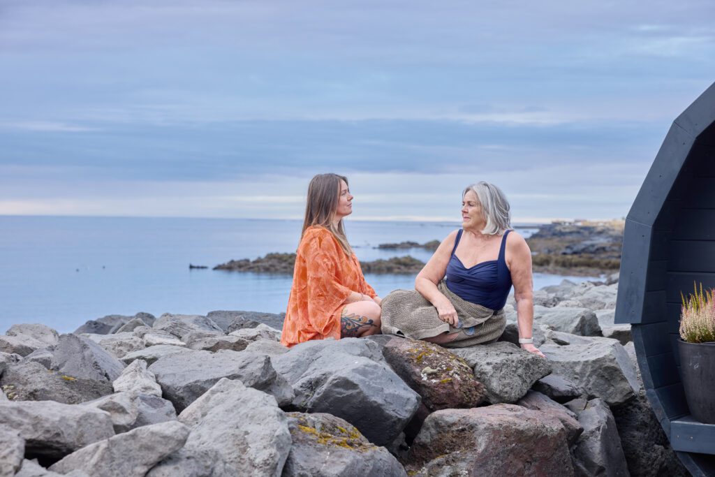 Silja describes the steam sessions as a sensory experience. “Yes, it feels so good to open the heart and let the tension drain away.” Lára agrees: “Yes, the steam brings you back to life. Here at Langeyrarmalir I have the sea and the people. We dip our toes in the fjord, draw energy from the seaweed, and I always look forward to it.”
