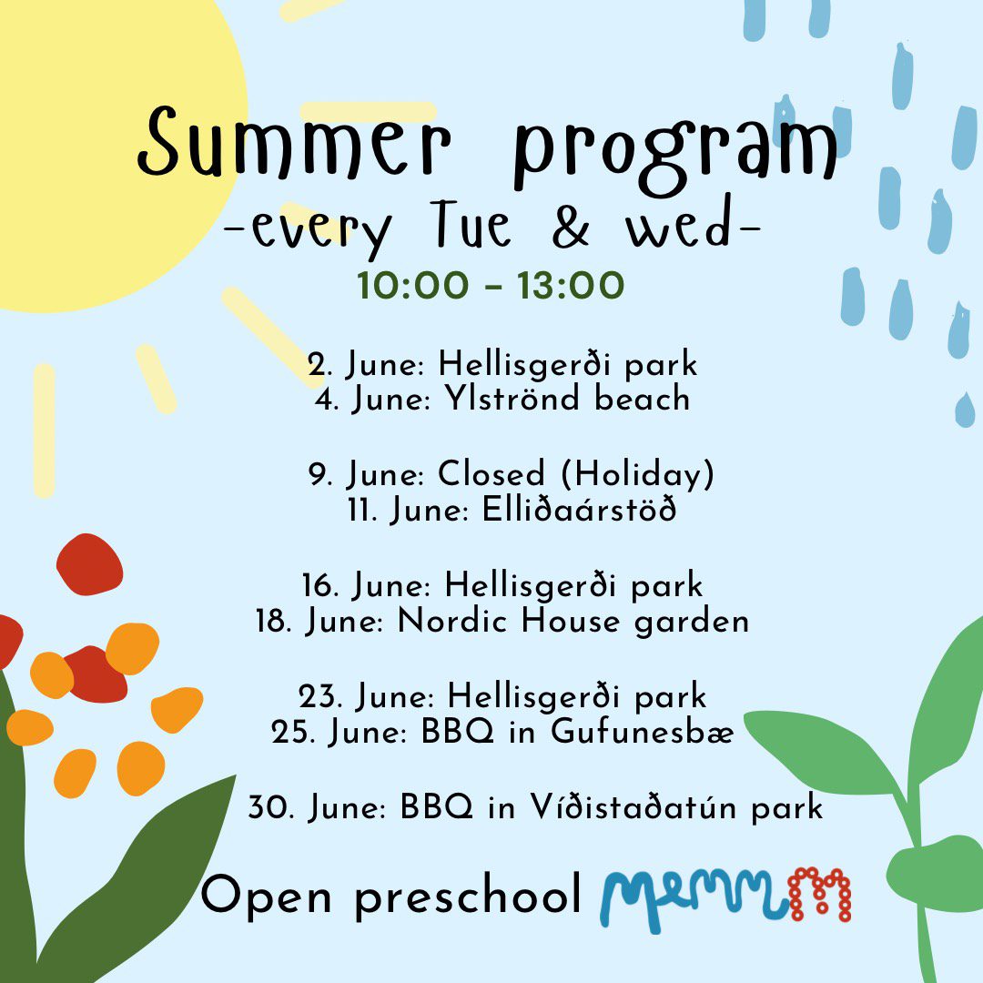The open preschool Memmm has launched a summer program. It is now possible to attend in various locations in Hafnarfjörður and Reykjavík twice a week. The school will be located both in Hellisgerði and at Víðistaðatún.