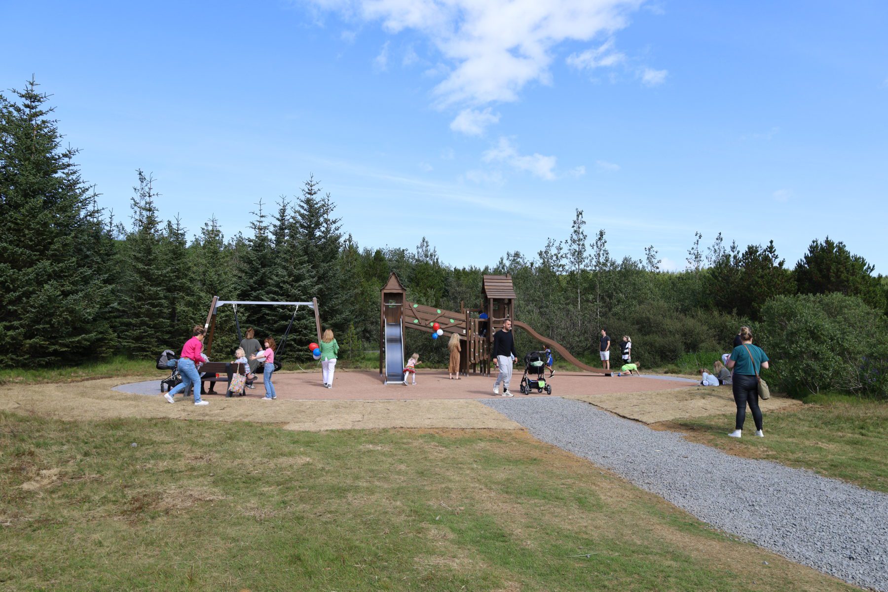The formal opening of the new play area by Hvaleyrarvatn was in late July, and recived the name; Paradísarlundur. There was great turnout at the opening, as there was a great summer breeze that welcomed guests of all ages by the lake that day.