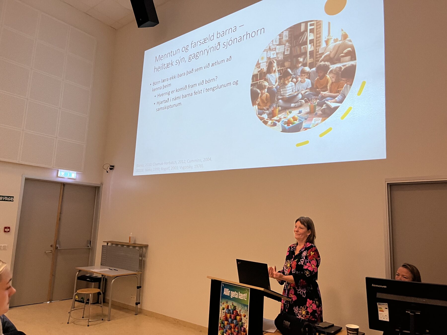 Hafnarfjörður is fortunate to have a wealth of professionals leading the workshops and lectures. Workshops for primary and preschool staff were held in the morning, while staff from after-school programs met in the afternoon at Ásland School. Professional days like these are important for strengthening professional work in preschools, primary schools, and after-school programs, for learning and connecting.