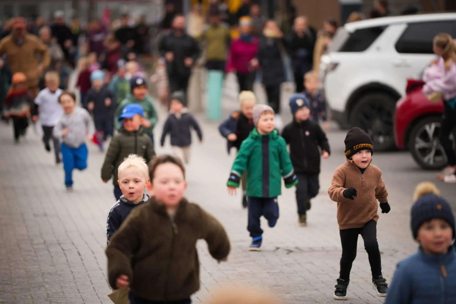 The kids dashed full of energy in the Hafnarfjörður Cross-Country Race on the first day of summer. Yes, it was a beautiful sight to see the children racing ahead on this very first day of the summer season.