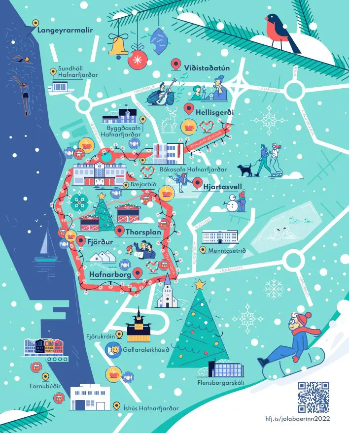 Hafnarfjörður turns into a true Christmas town in the run-up to Christmas, where families and friends experience a warm and relaxed festive atmosphere. There you will see gentle Christmas lights, listen to sweet tunes, find a wide selection of gifts, a thriving culture and unique Christmas events. The Christmas route that runs through the heart of Hafnarfjörður, includes a mix of experiences, entertainment, outdoor activities, shopping, services and a refreshing sea breeze. Advent is a time of togetherness and the Christmas town of Hafnarfjörður is the perfect place to create beautiful and long lasting memories together with your loved ones.