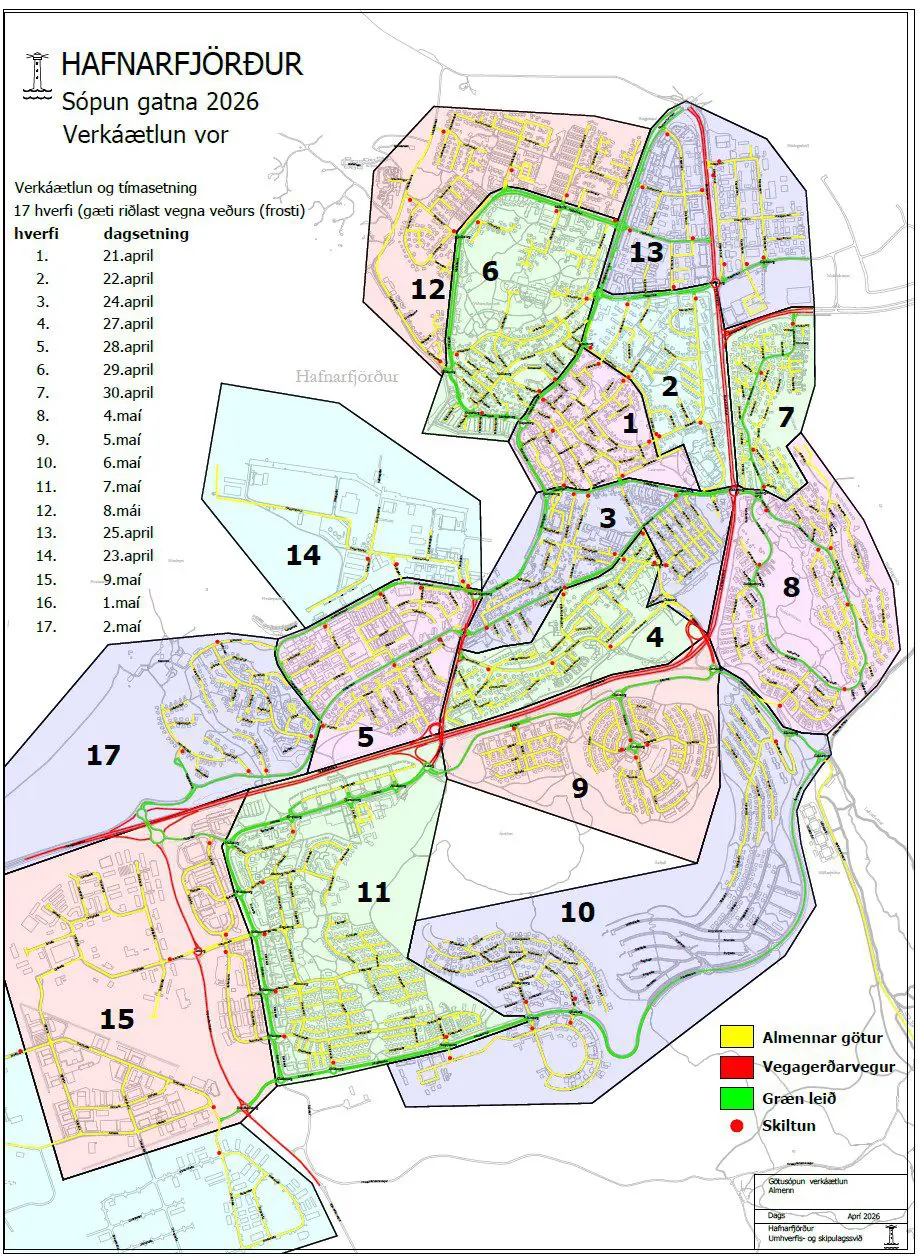 Spring street sweeping on streets, sidewalks, and pathways in Hafnarfjörður began immediately after Easter. As before, priority is first given…