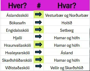 Where were the entries submitted for the competition? The treasures from Áslandsskóli, for example, can be found in Vesturbær and Norðurbær, while the treasures submitted directly to the library can be found in the Holt area (regardless of which school the author attends).