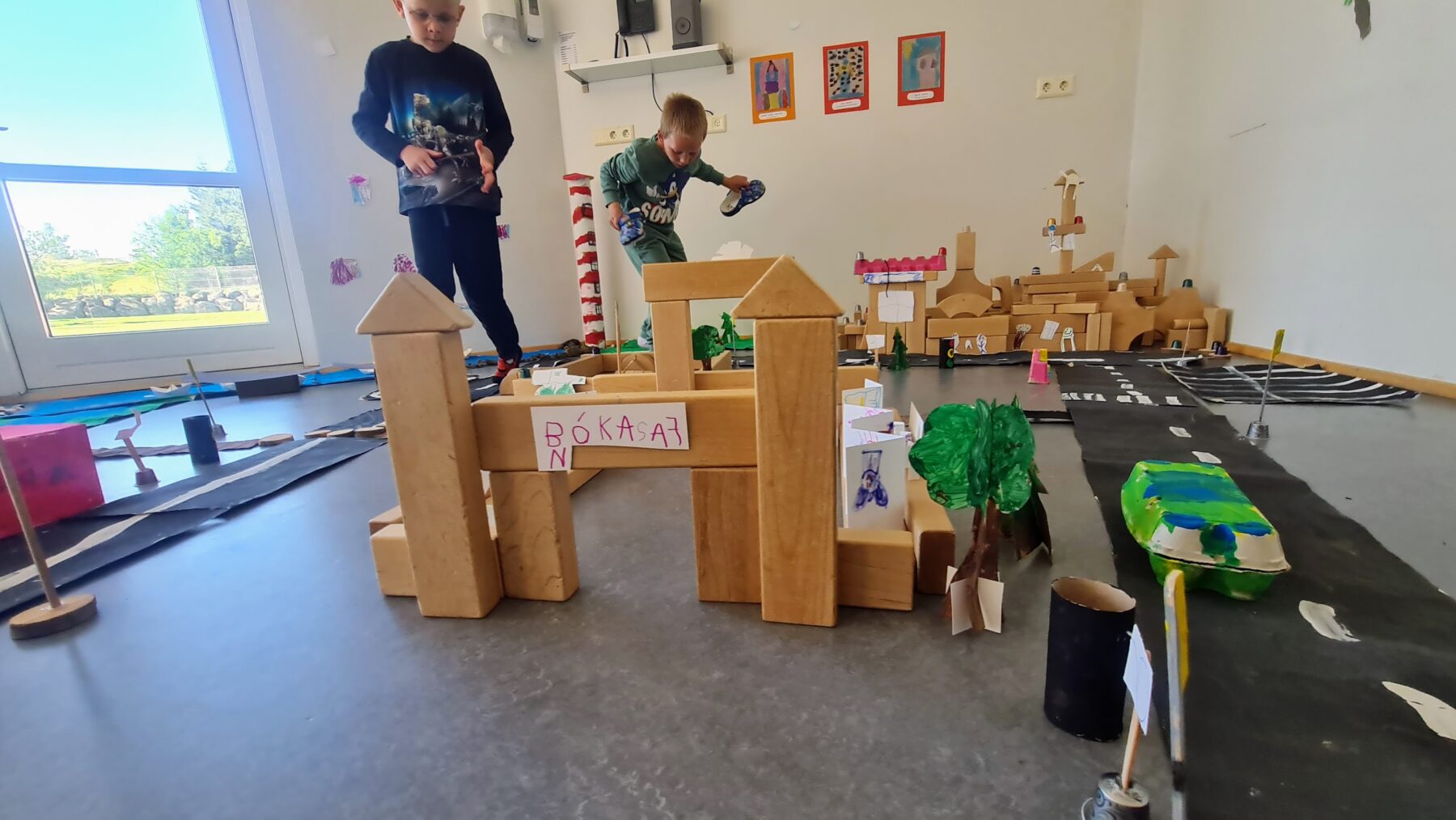 In the children’s town, one can find a swimming pool, an airport, a two-story bus, and various well-known landmarks here in Hafnarfjörður. Our lighthouse can be seen among them. There was great excitement in the group, and they competed to show the mayor their part of the build and design.