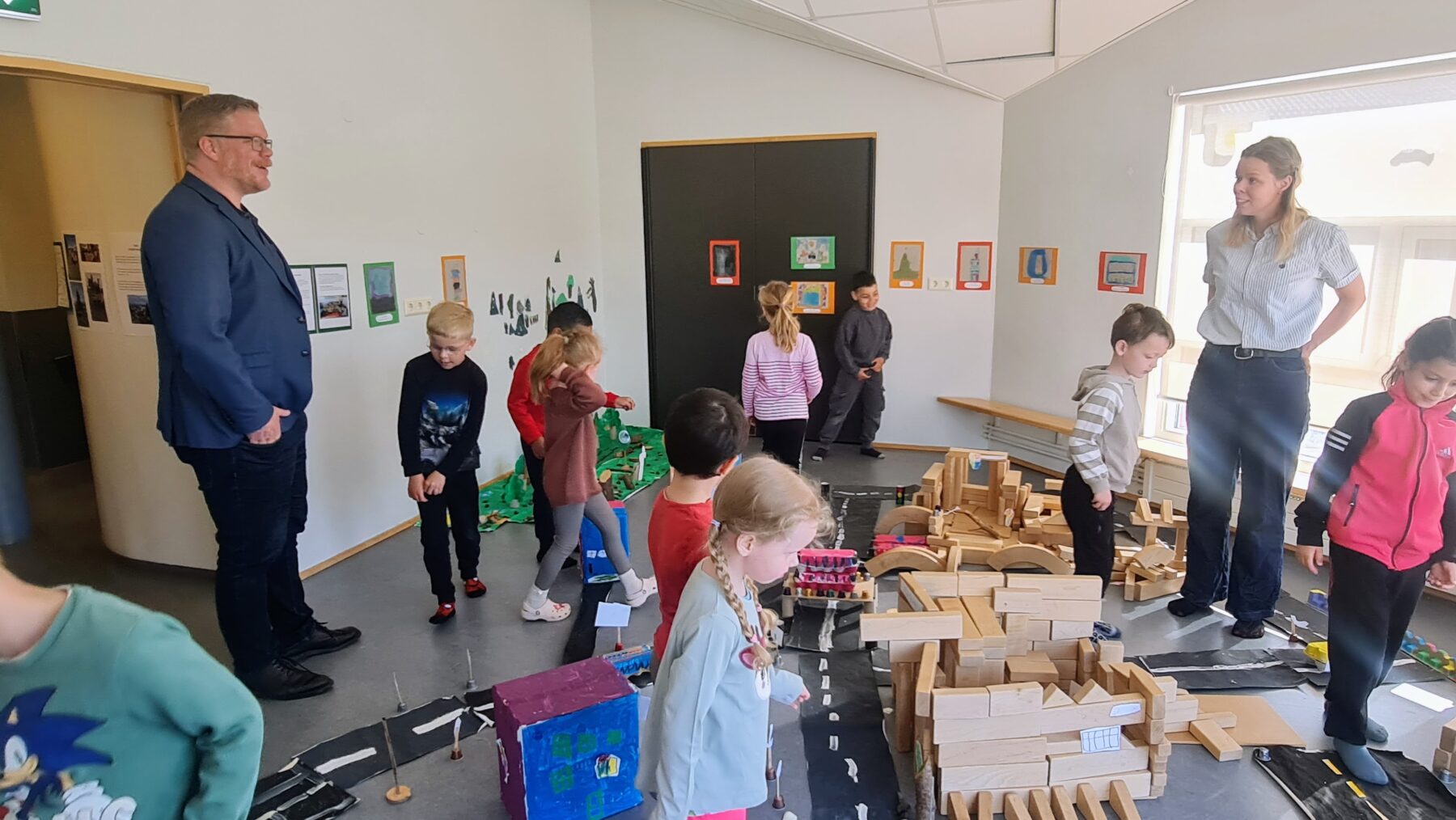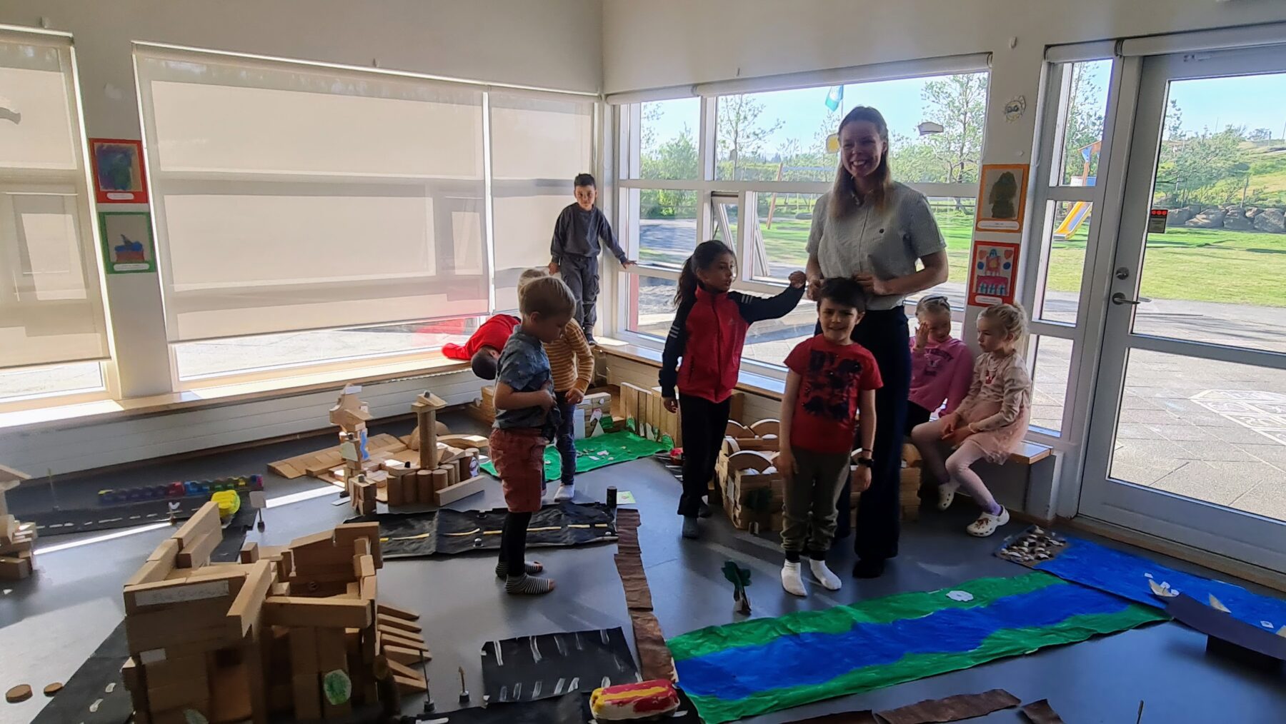 The graduating group of children at the Hlíðarendi preschool welcomed the mayor yesterday morning and presented their final project, a custom-made town that covered the entire floor of the classroom.