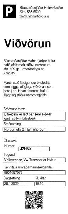 This week, the Hafnarfjörður Parking Fund will begin placing warning notices on vehicles that are parked illegally in the town. The aim of the enforcement is to improve traffic safety, ensure accessibility, and promote better traffic flow for residents and visitors. Drivers are encouraged to park legally and show consideration in traffic.