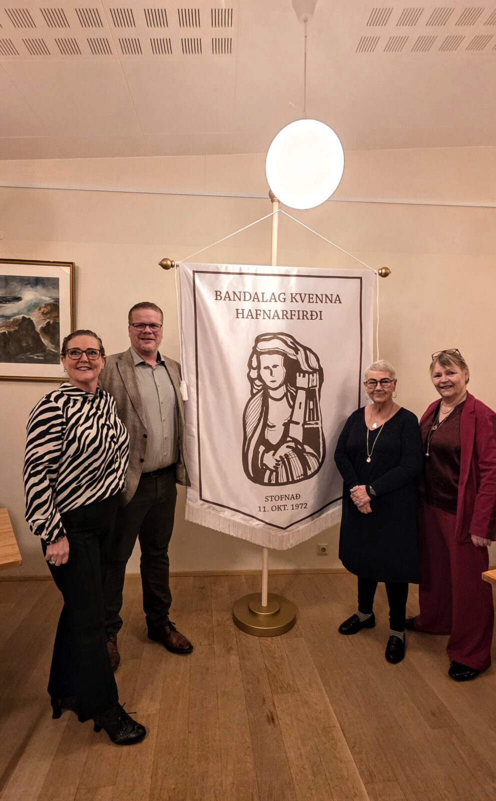 “We have felt in recent months that we were missing a ceremonial flag,” says Elfa Sif. Hafnarfjörður municipality supported the production. The emblem on the flag was designed by Gunnar Hjaltason, a goldsmith and painter in Hafnarfjörður. He has also crafted the alliance’s shield and a silver model to be worn as a pendant or brooch. Barbara adorns the emblem. “Yes, it’s wonderful to receive a flag in this important year for women’s rights.”