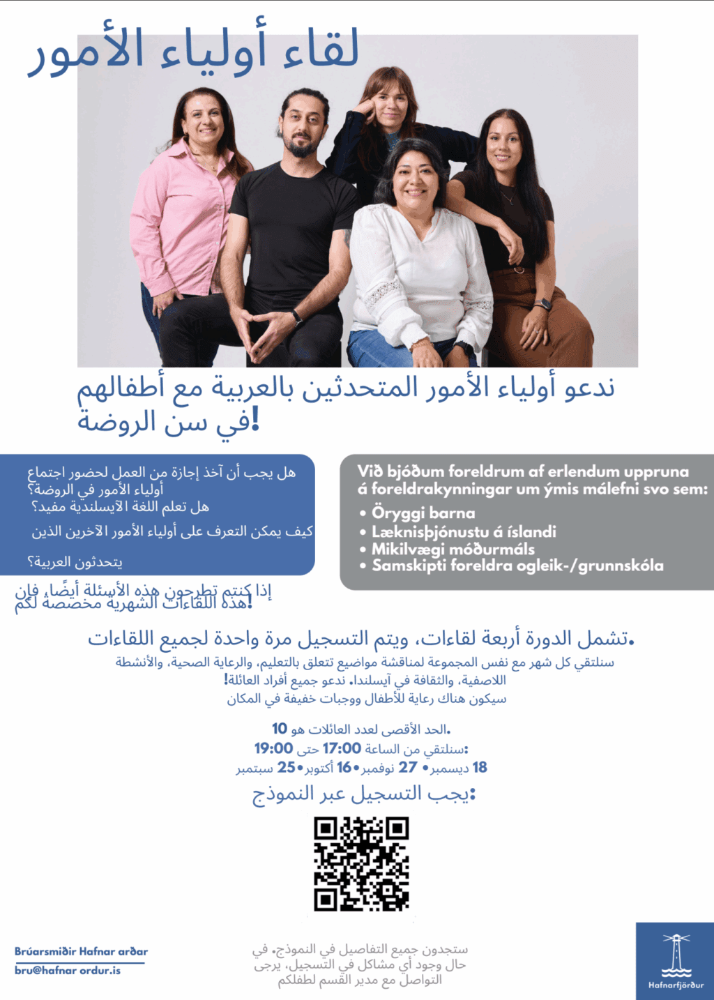 هل يجب أن آخذ إجازة من العمل لحضور اجتماع أولياء الأمور في الروضة؟ هل تعلم اللغة الآيسلندية مفيد؟ كيف يمكن التعرف على أولياء الأمور الآخرين الذين يتحدثون العربية؟