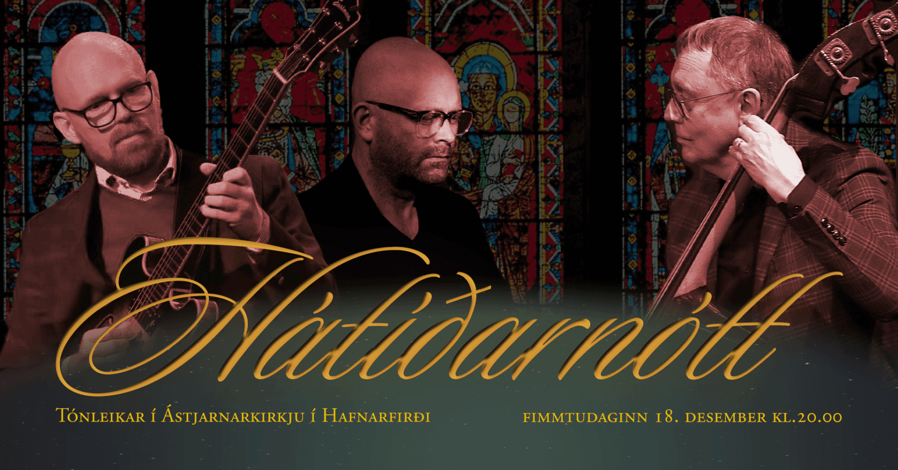 Before Christmas 2015, the album “Hátíðarnótt” was released, featuring Andrés Þór Gunnlaugsson on guitar, Karl Olgeirsson on piano, and Jón Rafnsson on bass performing Christmas songs and hymns that have been part of Icelandic Christmas traditions over the decades. At the concert, which lasts about an hour, they play the album from start to finish. The arrangements are on the calmer side, creating a cozy and relaxing atmosphere, which audience members often comment on and enjoy – it’s perfect just to come, listen, reflect, and enjoy.